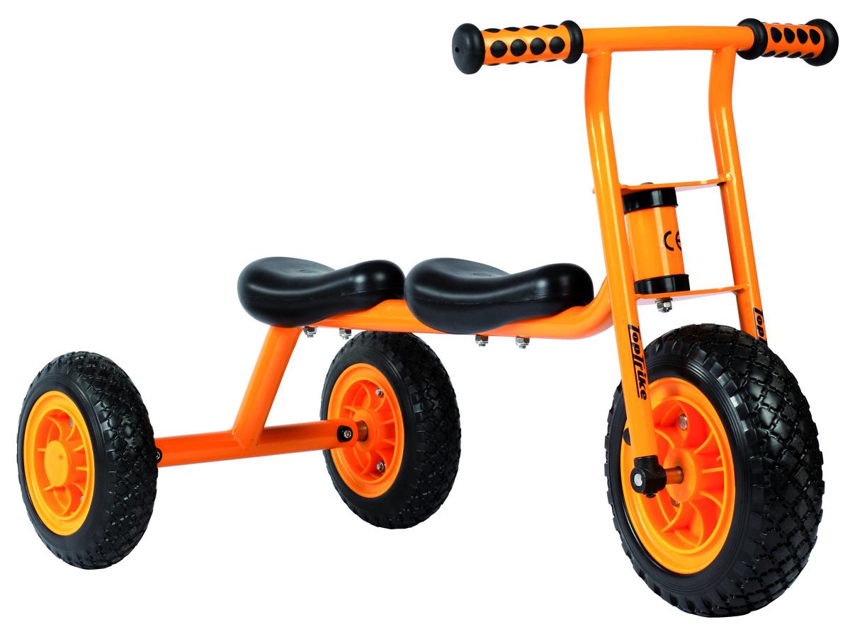 Ein Laufrad für zwei ist eine besondere Herausforderung für die Kinder in Bezug auf Koordination und Absprache. Die drei Räder sorgen für einen sicheren Stand und Fahrkomfort. Alter: ab 24 Monate.