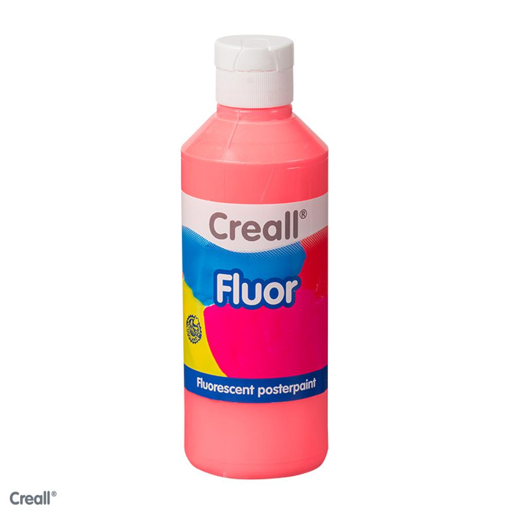Kinder lieben die strahlende Leuchtkraft unserer FLUOR-Farben. Creall-fluor ist eine wunderbaren Plakatfarbe mit eine spezielle leuchtende Serie von Fluorfarben. Es macht besonders viel Spaß, mit diesen hell leuchtenden Farben zu malen. Creall-fluor ist schön pastös und kann direkt verwendet werden. Die Farbe ist dick und kräftig, sie hat eine ausgezeichnete Deckfähigkeit und kann sehr gleichmäßig ausgestrichen werden. Creall-fluor ist so konzentriert, dass sie bei Bedarf auch mit Wasser verdünnt werden kann (höchstens 30% des Volumens hinzufügen). Um ihre Leuchtkraft optimal zu unterstützen, wird in Creall-fluor keine Kreide, sondern besonders viel Pigment verarbeitet. Creall-fluor kann von Tischen, Pinseln etc. einfach mit Wasser entfernt werden. Die Fensterscheiben im Klassenzimmer können auch mit Creall-fluor angemalt werden.