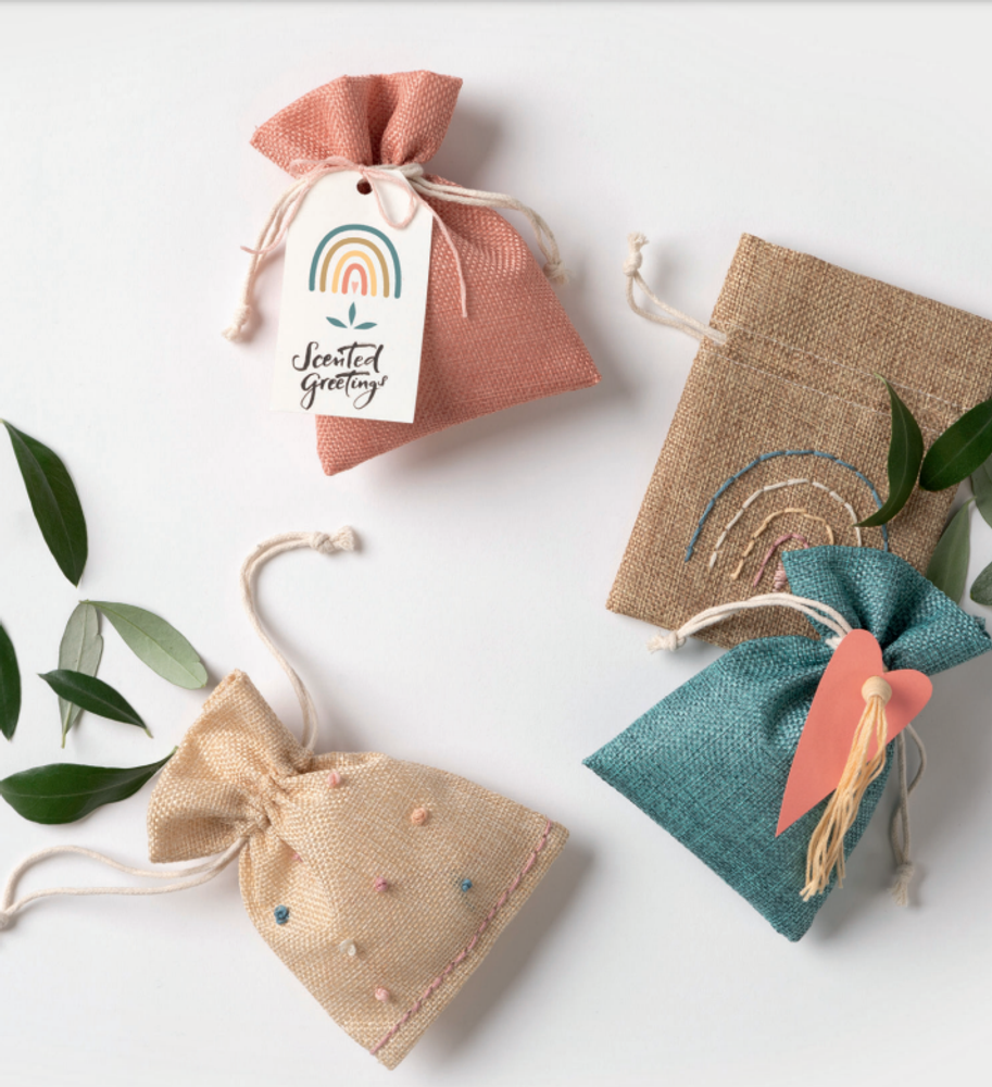 Ob als Geschenkbeutel für Geburtstage, Hochzeiten & Co oder für Adventskalender – in den Stoffbeutelchen sind kleine Überraschungen hübsch und nachhaltig verpackt. Der natür-liche Farbmix ist zu jeder Saison angesagt. Die Stoffbeutel lassen sich auch nach Lust und Laune besticken und personalisieren.
