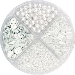 Perlen- und Pailletten-Mix - Schmuckset 90 x 10 mm, weiss, 30 g