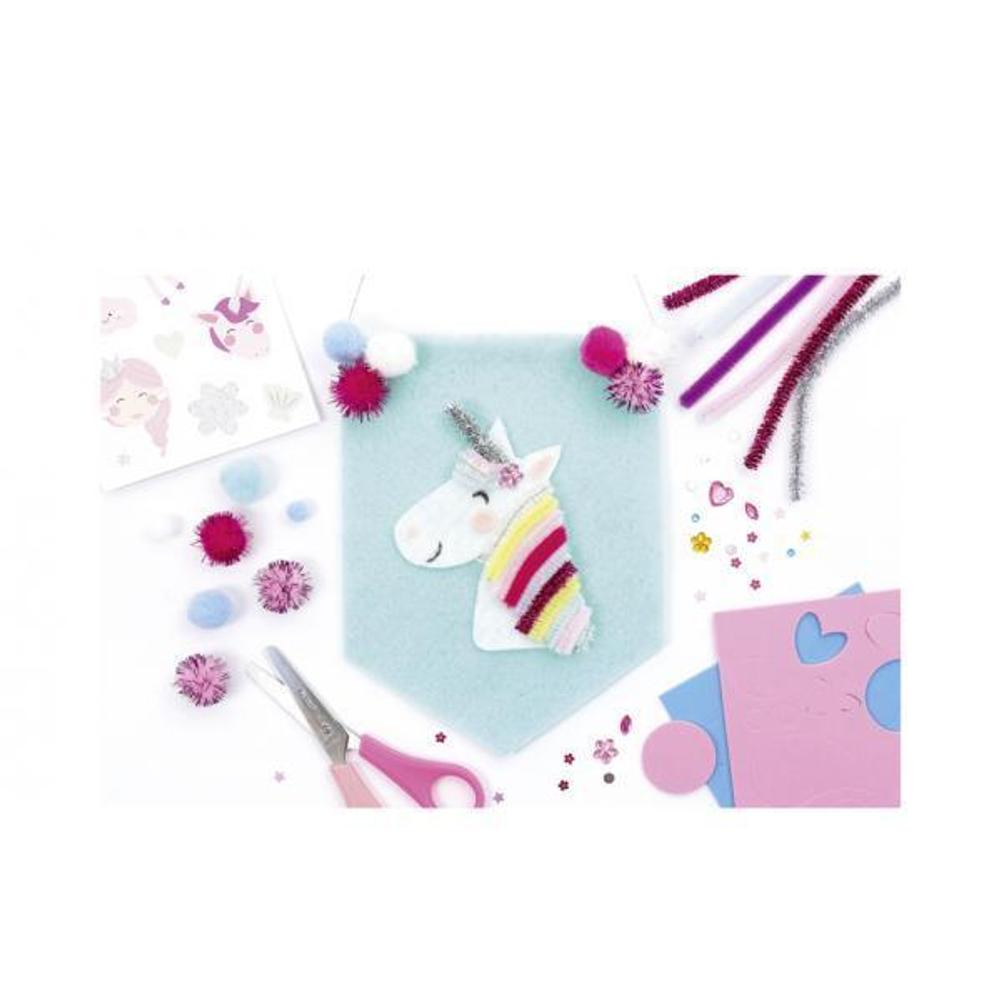 Das Folia Bastel-Set Chenilledraht UNICORN enthält 227 Teile. Mit diesem Set können tolle bunte Kunstwerke gebastelt werden. Enthalten sind 30 x Chenilledraht (auch als Pfeifenreiniger bekannt), 30 Pompons, 56 Moosgummi-Stanzteile, 21 Sticker, 60 x Schmucksteine und Pailletten und 30 lustige Wackelaugen.