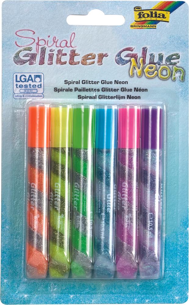Glitter-Glue SPIRAL NORMAL, NEON oder PERLMUTT, 6 Stifte à 10,5 ml, farbig sortiert.