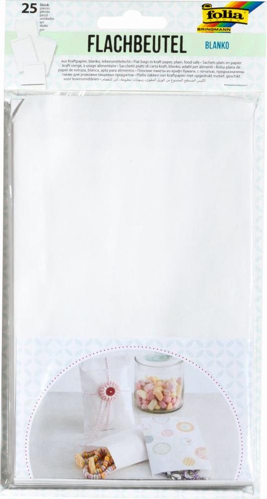 Papiertüten blanko, flach, lebenmittelecht, 130 x 200 mm, 25 Stück, weiß
